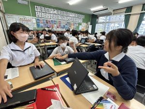 今日は、「賢治が『やまなし』で伝えたかったこと」について交流しました。子どもたちからは、「自然の恵みと怖さ」「自然の美しさや厳しさ」「命の大切さ」「生と死の関係」「生き物のささやかな暮らし」「生き物の心」「子がにの成長」「賢治の人生」などを伝えようとしているのではないかという意見が出てきました。