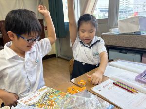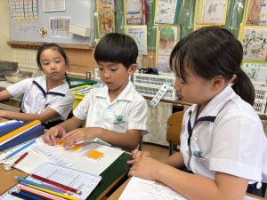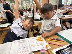 149のみんなも待ちに待ったかけ算の学習を楽しんでいる様子です。その中でも、かけ算の良さ等もしっかり考えていました。