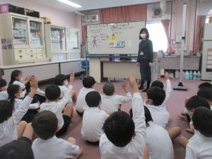 睡眠の必要性について養護教諭からお話を伺い,自分の生活リズムについて見直しました。