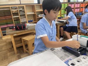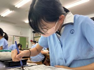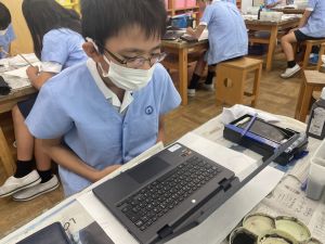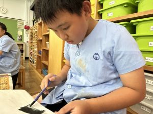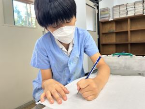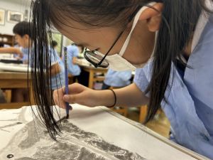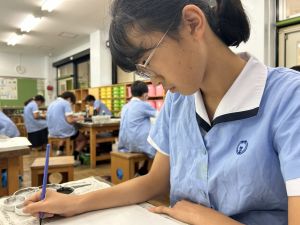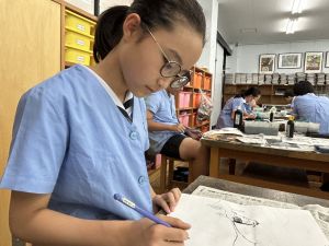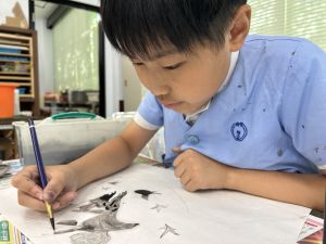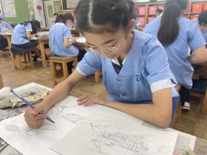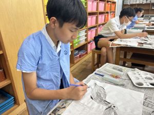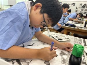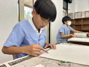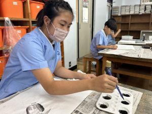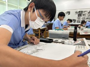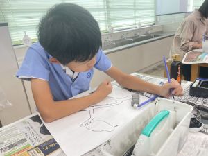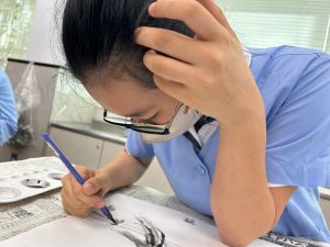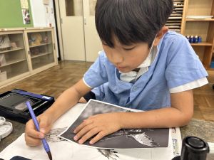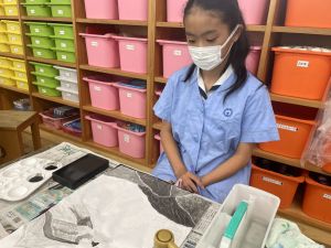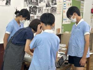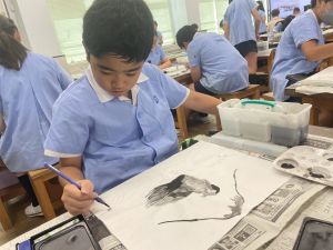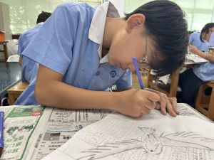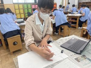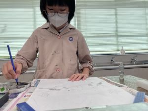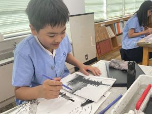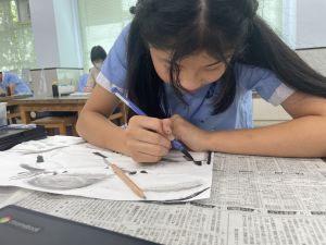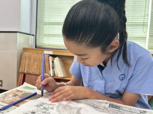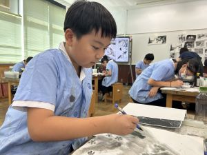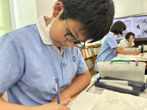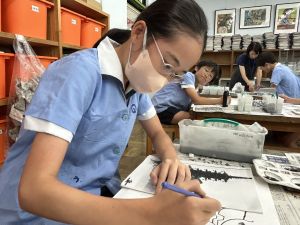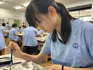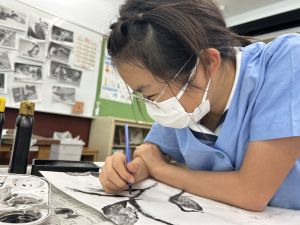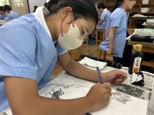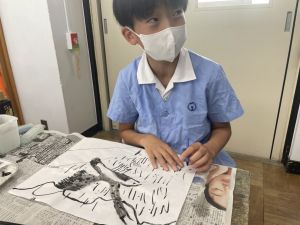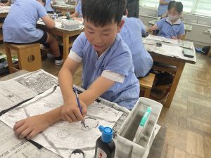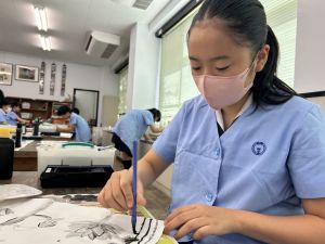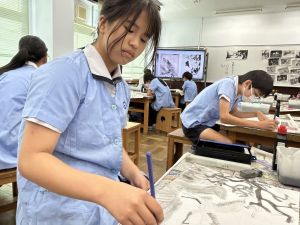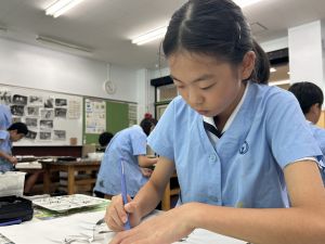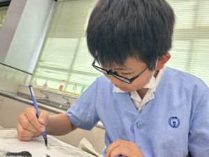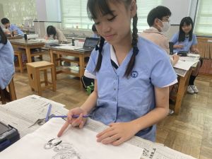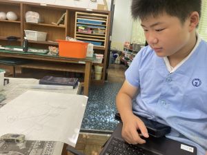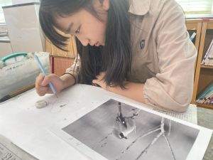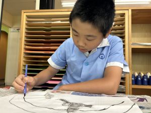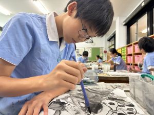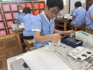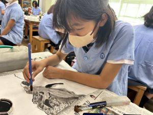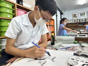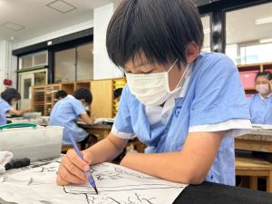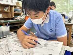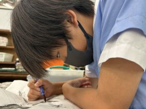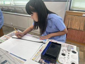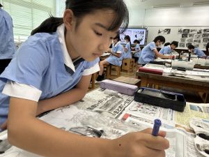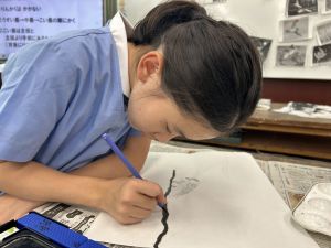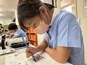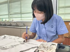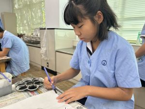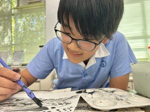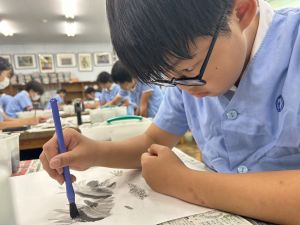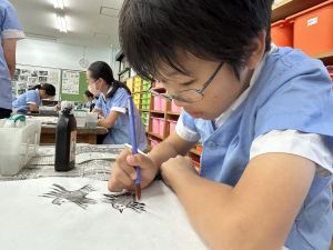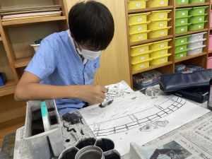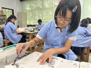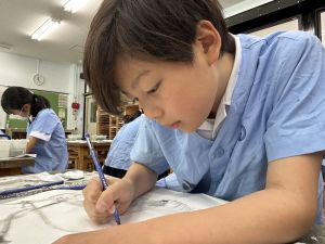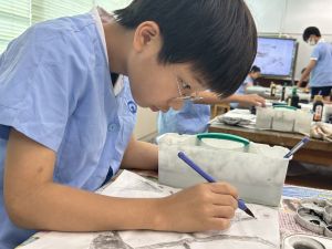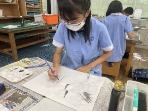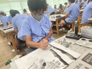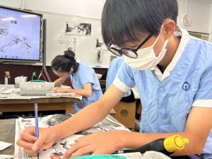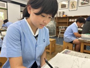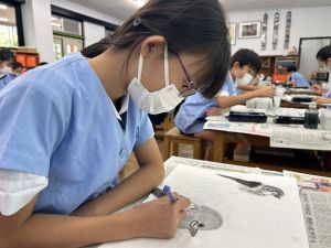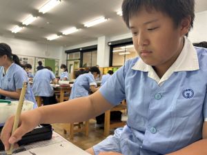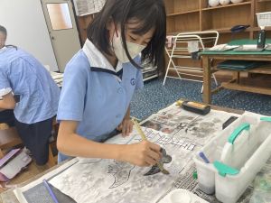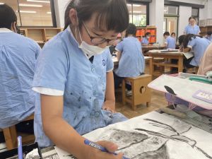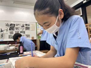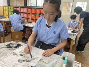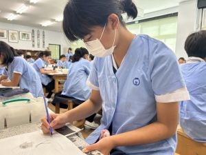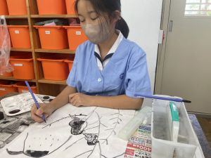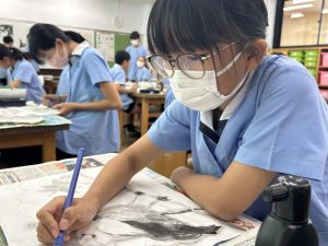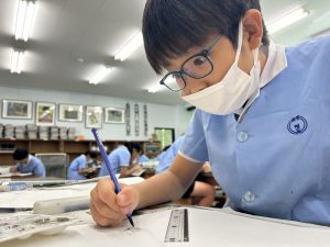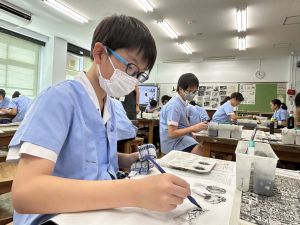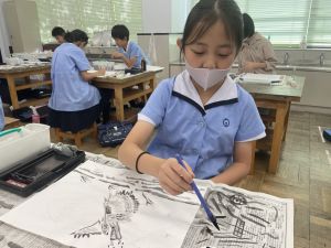 次は,アート展に向けてコツコツ頑張っています。SPORTS DAYで掲げた「一致団結 真剣 ゴールに向かって」のスローガンを日々のこういった授業でも態度で示している人がいるのが素晴らしいです。