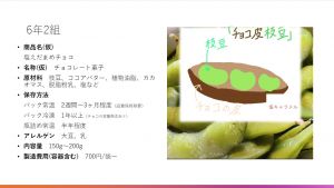 今日のSTの時間には,各クラスで商品開発の今後の方向性について話し合いました。話し合いを進める中で、「どのようなお客さんをターゲットにするのか」「分量はどのくらいになるのか」「実際の商品の味や食感はどのくらいなのか」など、様々な質問が出てきました。こちらの質問については、この商品開発プロジェクトに関わってくださっている方に質問する予定です。