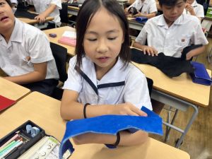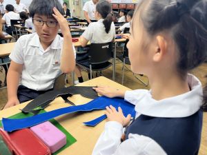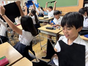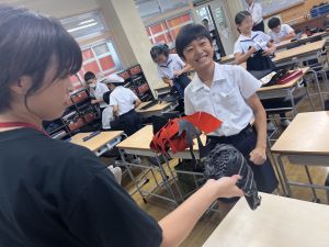 ミズノさんの会社説明を受けた後、端材を再利用できないかについて考えました。