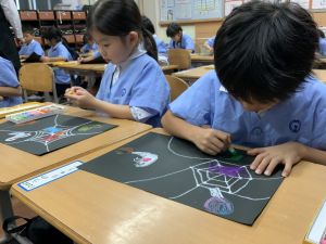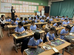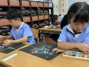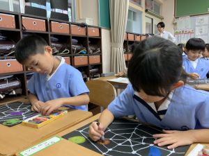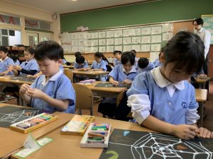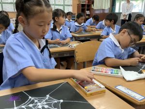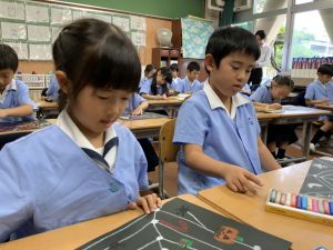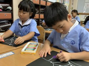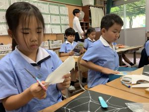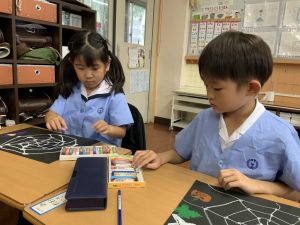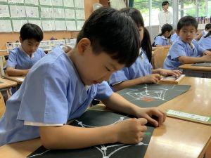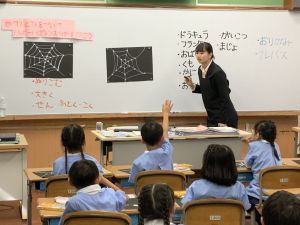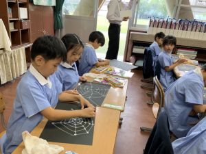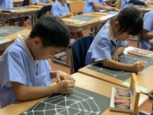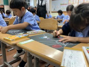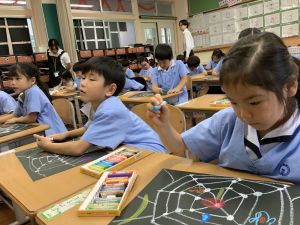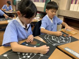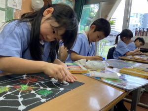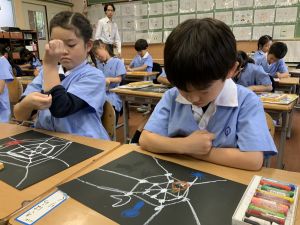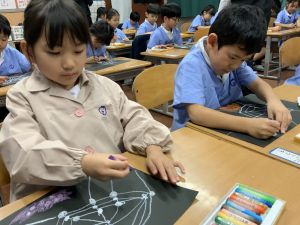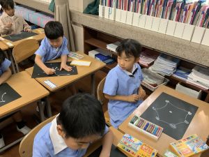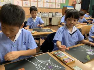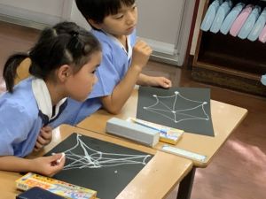 先生の話どおりに点と点をつなぐと…くもの巣が!