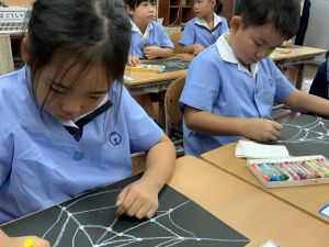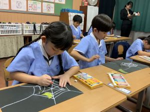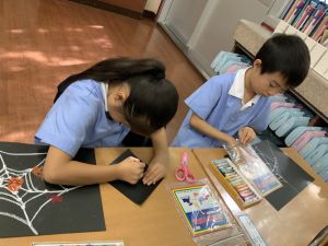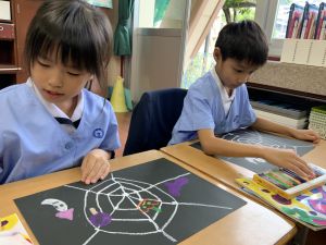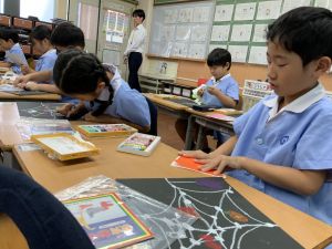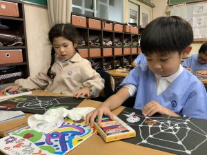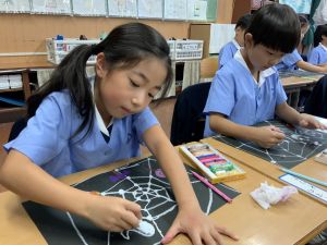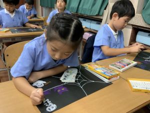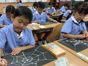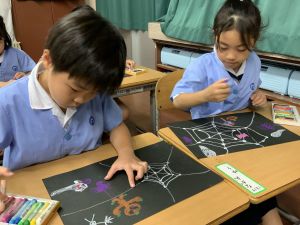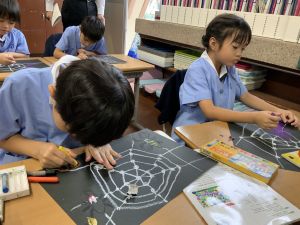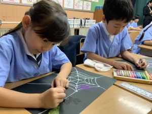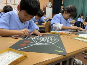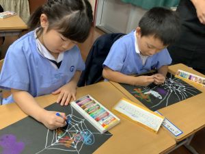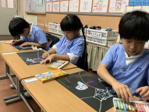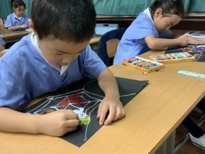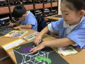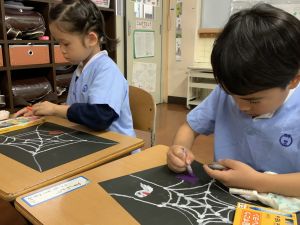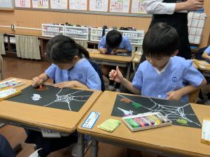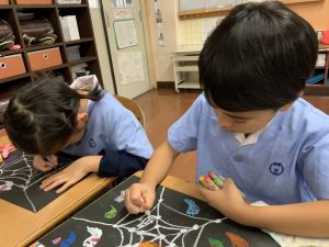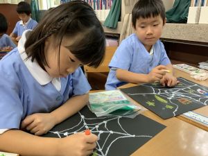 おばけにかぼちゃにこうもり・お菓子…どんどんくもの巣にかかっていきます。さあ大変!廊下がもうすぐくもの巣だらけになってしまいます。お楽しみに?
