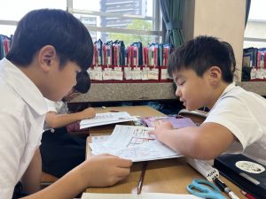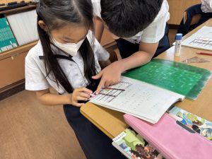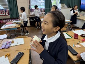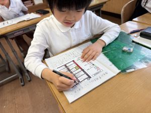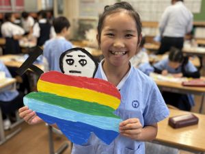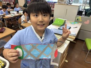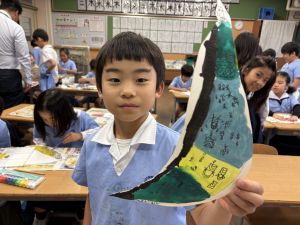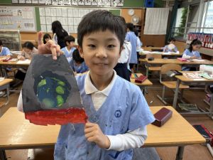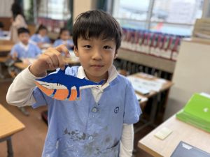 2組さんの、図工の作品も完成しました。ついつい、裏返したくなるものばかりですね。