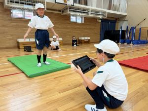 今日の体育の学習では、「みる」「知る」「ささえる」の部分でもがんばっています。