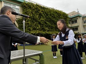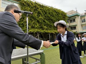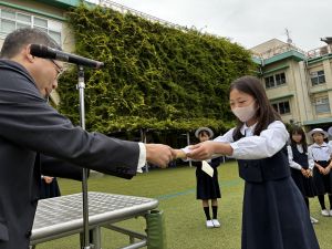 今日の朝礼では表彰があり、6年生から3名の人が表彰されました。学年の中でお互いに高め合っていけるといいなと思います。