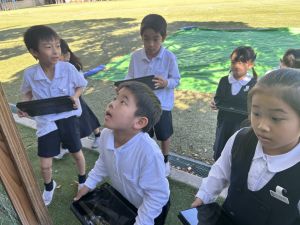 子どもたちが「自分の目で見つけたもの」を「誰かに伝えたい」と思う気持ちを大切にしながら、これから文章にまとめたり、絵で書いたりしていく予定です。どんなものができあがるのか、楽しみですね!