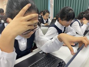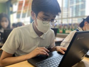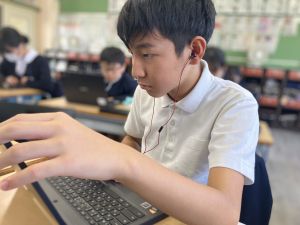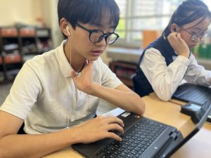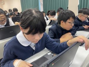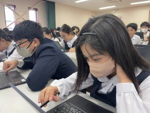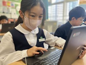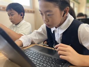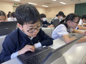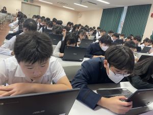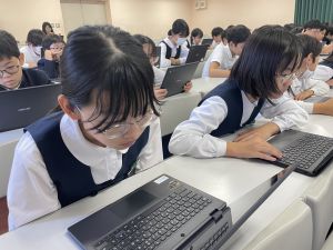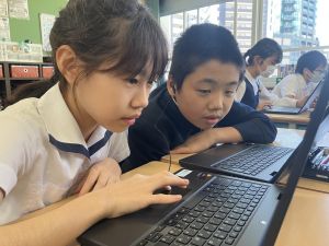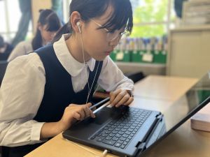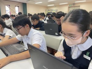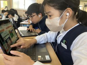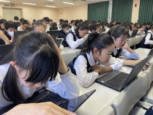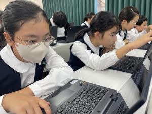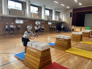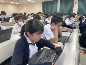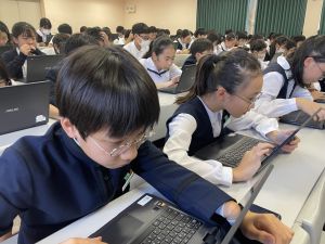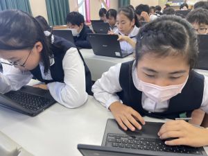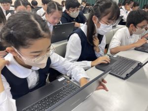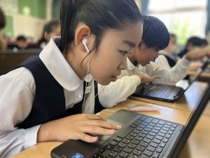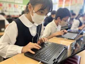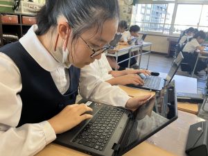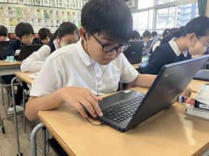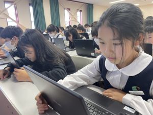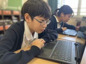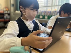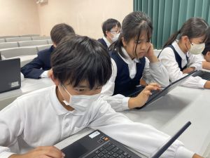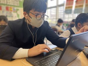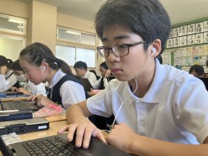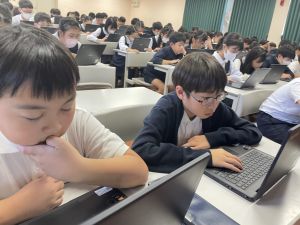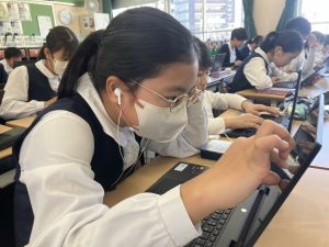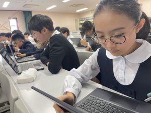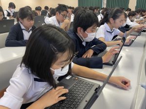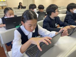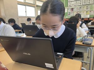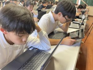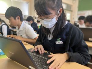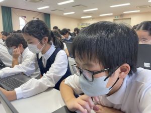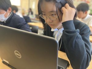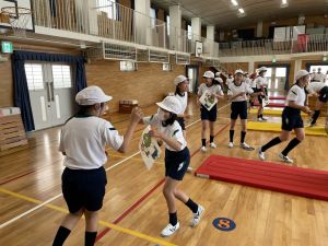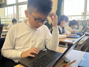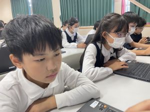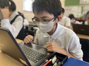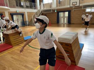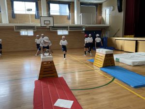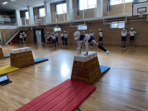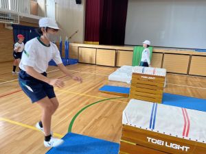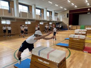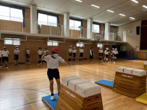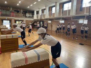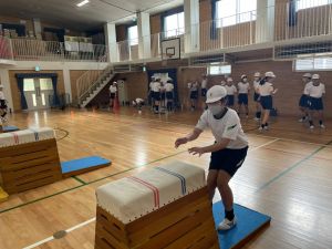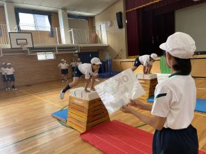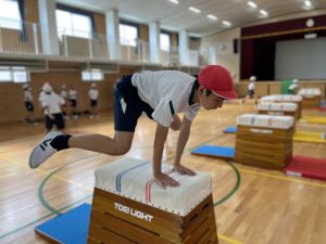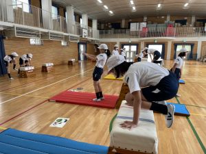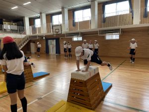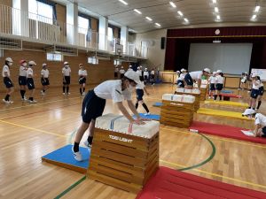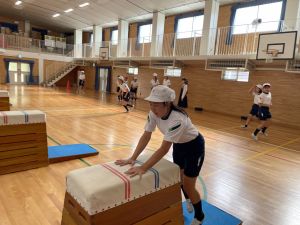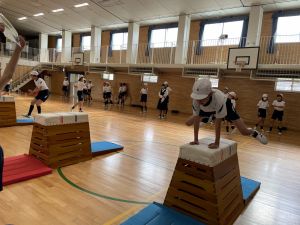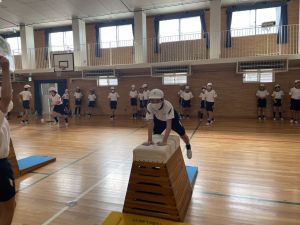 体育では、跳び箱運動を学習しています。久しぶりの跳び箱にはじめは、「できるかな」と不安そうな顔でしたが、少し練習すると跳べる子がほとんどでした。どのクラスも、同じグループで苦手な人に声かけしたり、アドバイスしたり、カメラで撮って課題を教えてあげたり、これまでの臨海学舎やSPORTS DAYで学んだことが普段の授業でも自然と、態度として身についている人がたくさんいました。