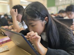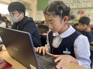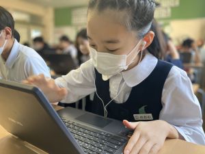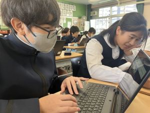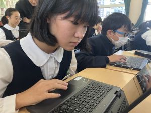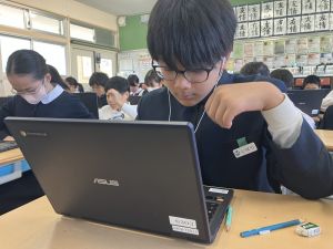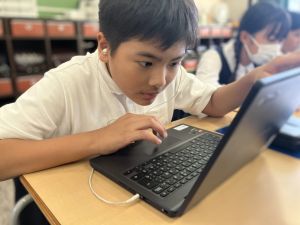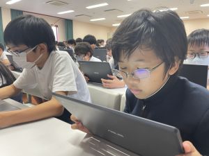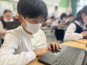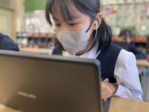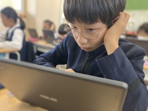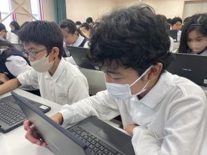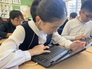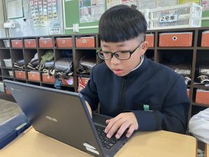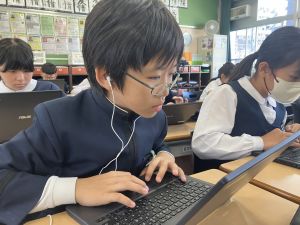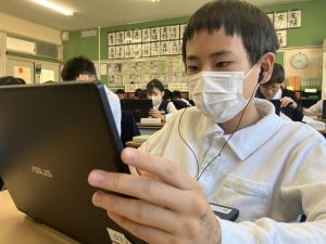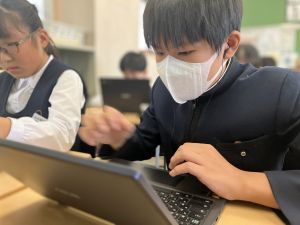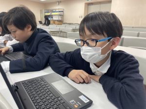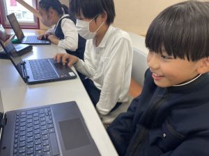 今日の学習ではお手本通りにプログラムを組んで、簡単なゲームをつくりました。今日作成を進めたゲームをもとに、自分なりにプログラムをアレンジして、オリジナルゲームを作成することがコンテストの目標です。締め切りは2月上旬頃ですので、まだまだ時間はたっぷりあります。学校での学習の時間を活用しながら、少しずつ取り組んでいます。ブラウザアプリで行っていますので、ご家庭でも取り組むことができます。子どもたちには、すべき課題などを先に済ませることやおうちの人に取り組んでよい時間を確認してから取り組むように伝えていますので、よろしくお願いいたします。