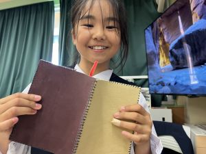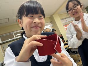 お家でアイデアを考えてきた子、試しに折り紙で作ってきた子、そして苦戦しながらも実際の革で作ってきた子。