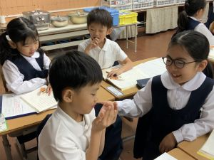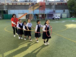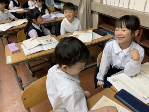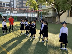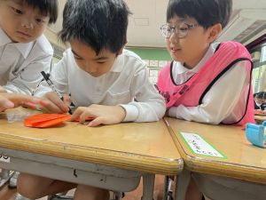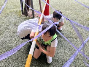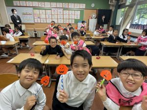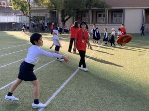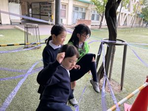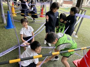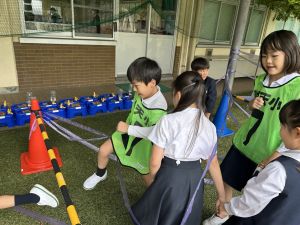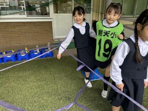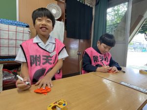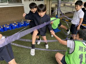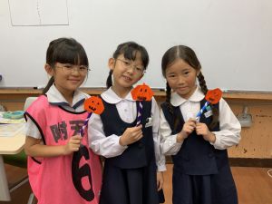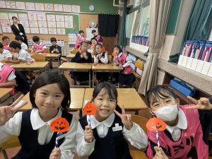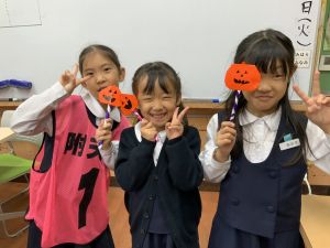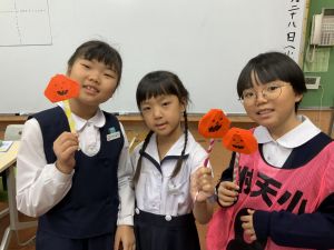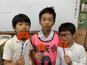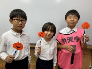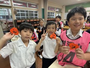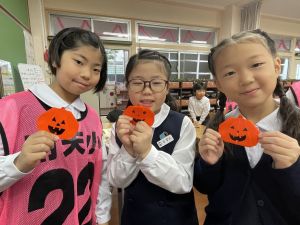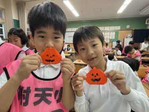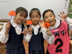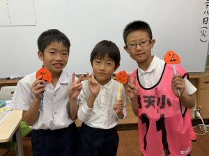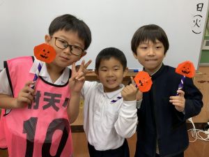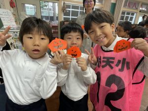 そんな日本のハロウィン文化にあやかって、附天小でもトリオ活動の中で、ハロウィンにちなんだテーマで遊ぶ活動を取り入れました。