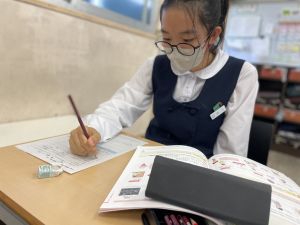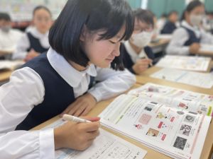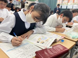 教室には透明のアクリルボードが設置され、手袋をして活動していた1年生の頃を思い出しました。