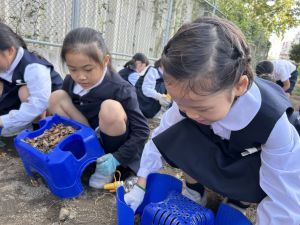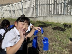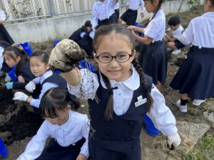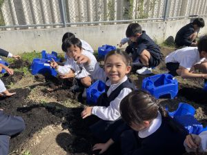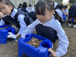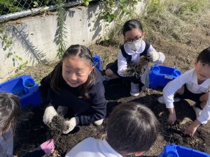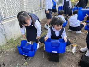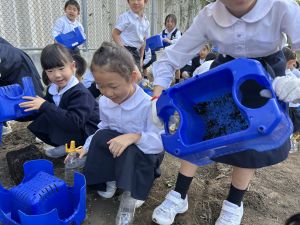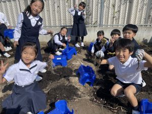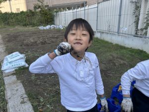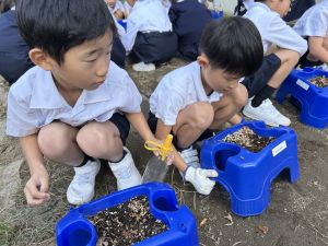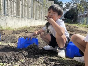 あさがおの土にはたっぷりの栄養が含まれているため、来年のさつまいもづくりに向けて丁寧に混ぜ込みました。