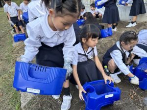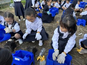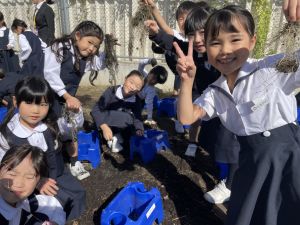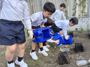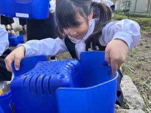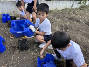 夏に育てたあさがおの植木鉢の土を、畑に返す作業をしました。