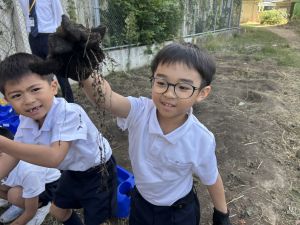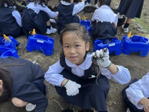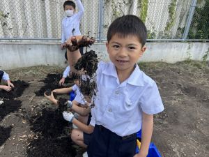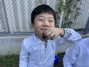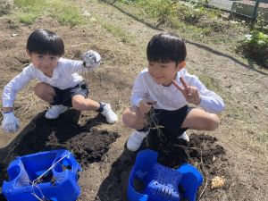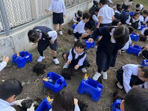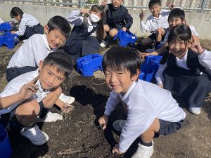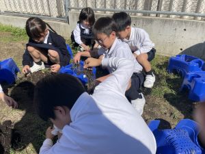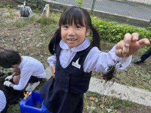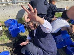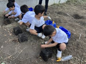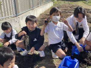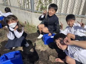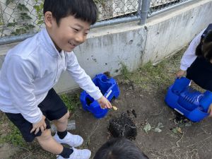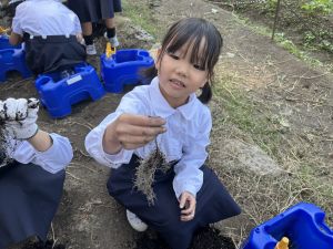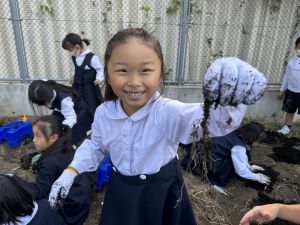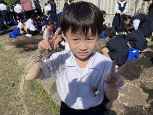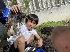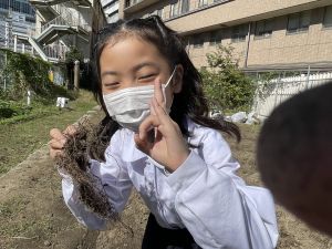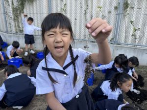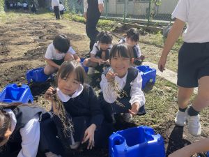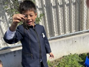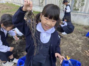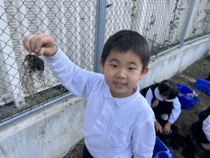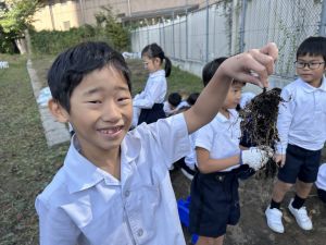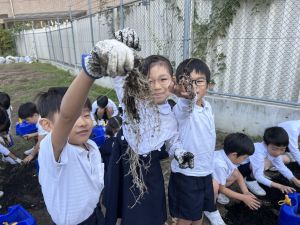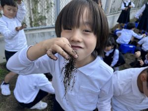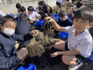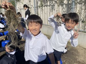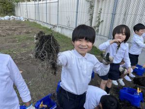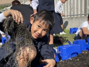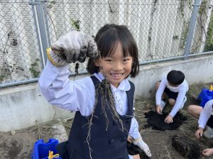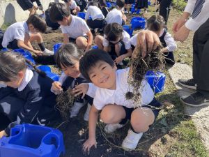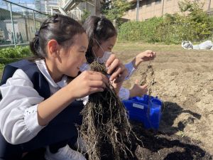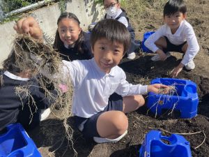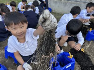 根っこを取り出してみると、とても大きくて長く、子どもたちは「こんなに伸びていたんだ!」と驚いていました。
