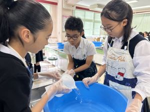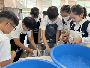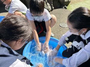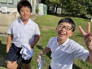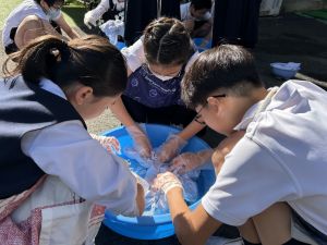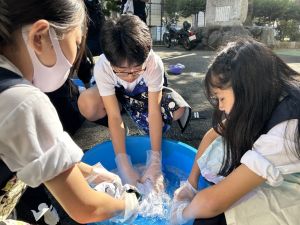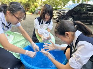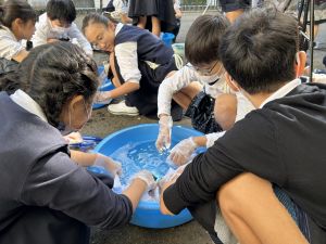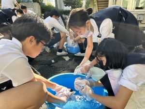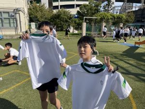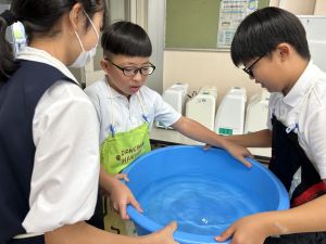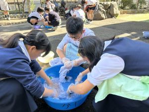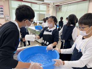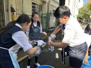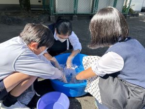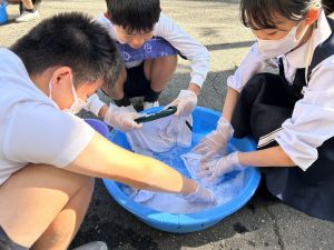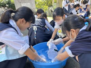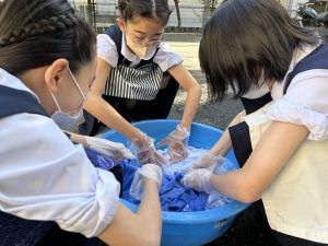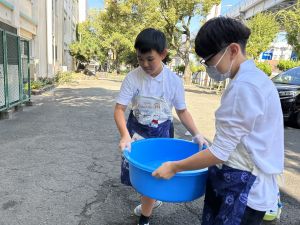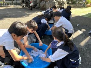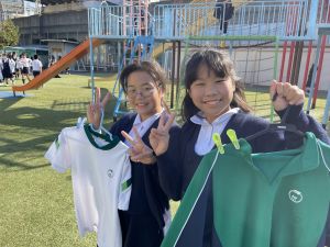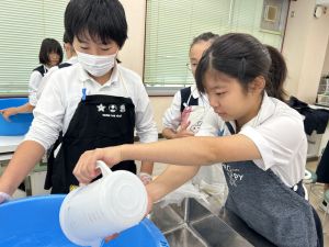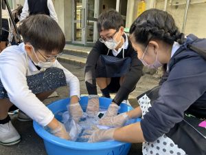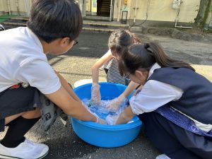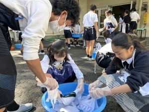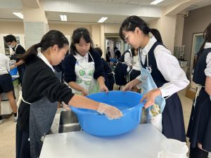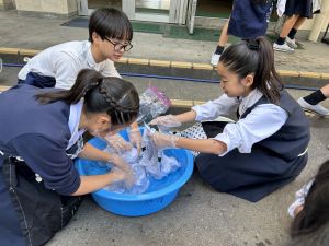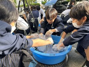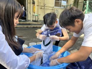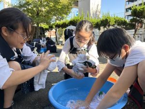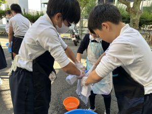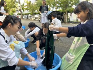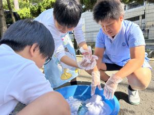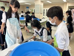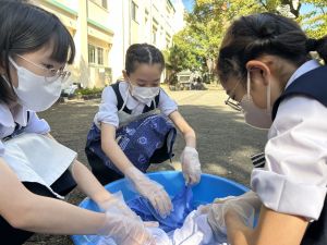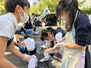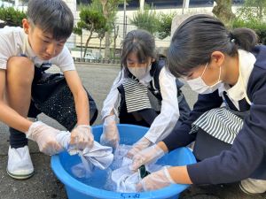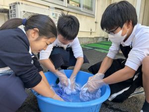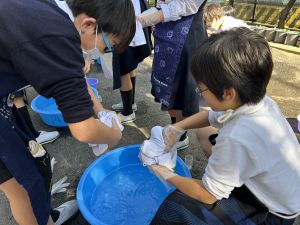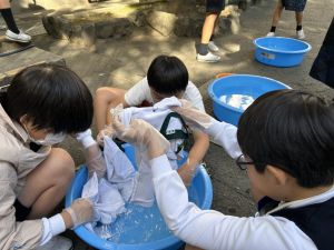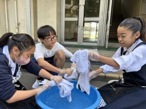 今日は家庭科の学習で体操服の洗濯にチャレンジしました。