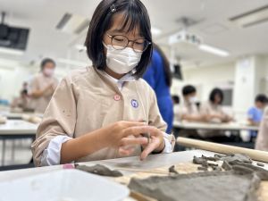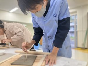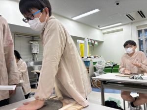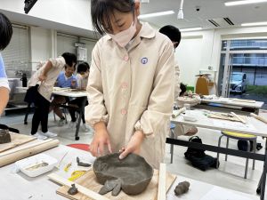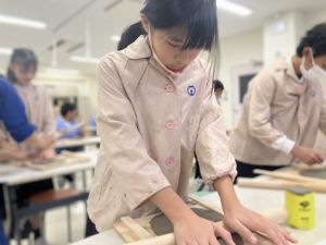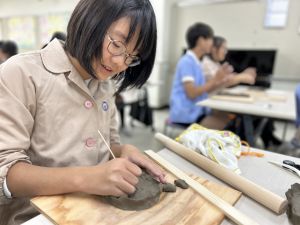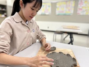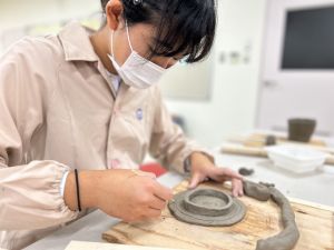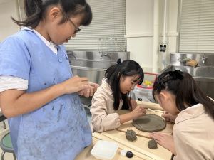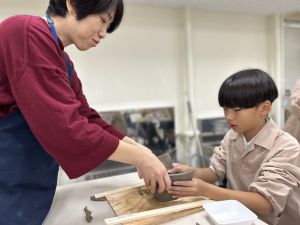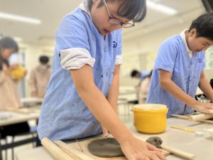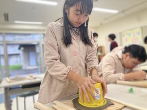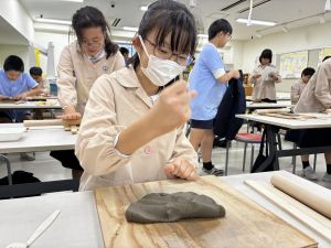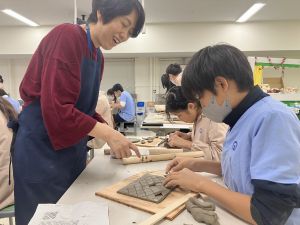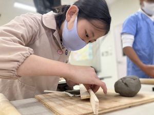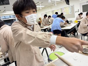 作品はこのあと大学で乾燥・焼成をしていただき、さらに色付けを行って完成する予定です。家族や妹のために心をこめて作る子もいて、温かい気持ちにあふれた時間となりました。うまくいかなくても何度も挑戦する姿がとても素敵でした。