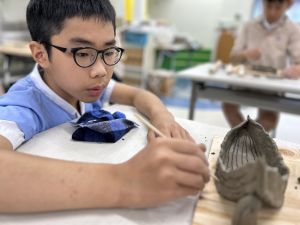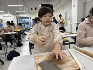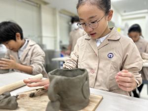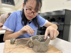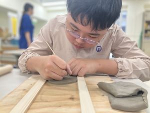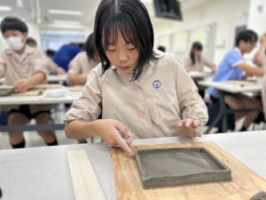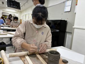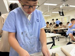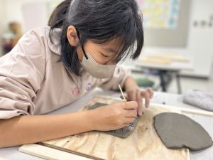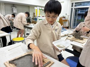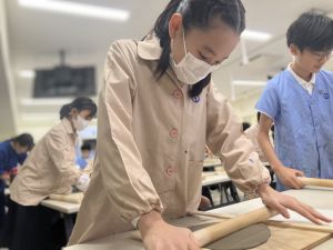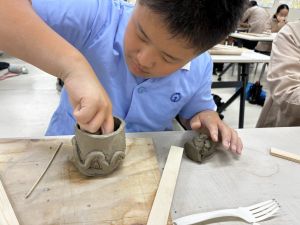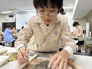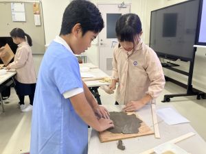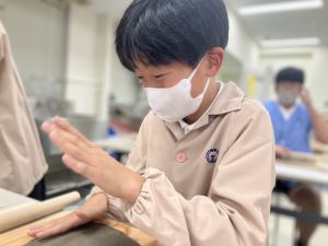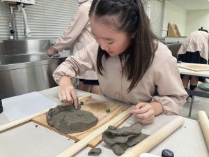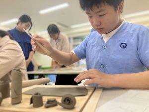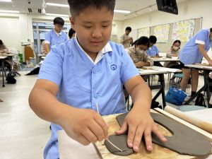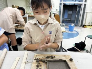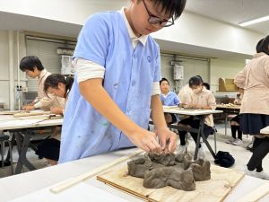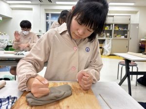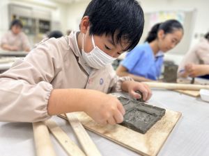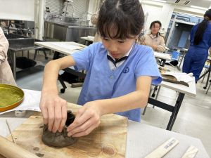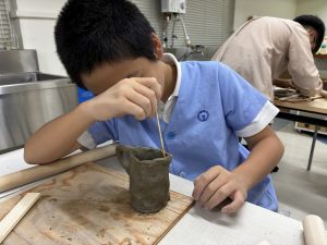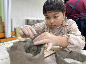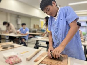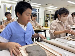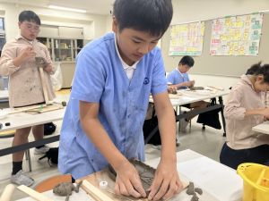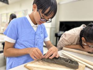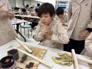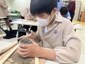 3年生のときにもお世話になった先生に再び教えていただきました。粘土を叩いて形を整えたり、「もっとこうしたい!」と何度も挑戦したりする姿がたくさん見られました。
