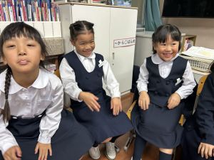【本日の連絡】 ◯体調管理についてのお願い現在、1年生に限らず、学校全体でインフルエンザなどによる体調不良が増えてきています。病気にかからないよう、引き続きご家庭での体調管理にご協力をお願いいたします。 来週からは、講堂での学芸会練習が始まります。講堂での練習時間は限られていますので、できるだけお休みすることなく登校できるよう、体調を整えていただければ幸いです。 |