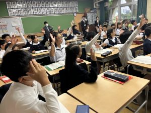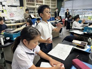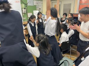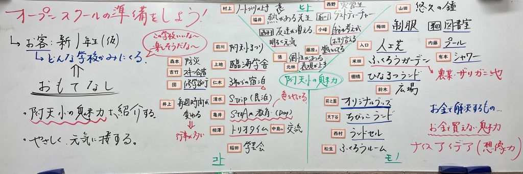 本日、総合で来る11月14日のオープンスクールで行う「おもてなし」で行うことについて話し合いました。