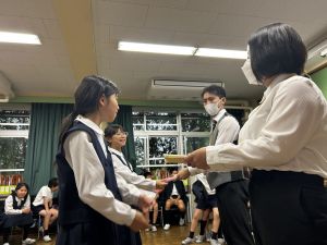来週から講堂練習が始まります。冬服で来るようにお声かけください。