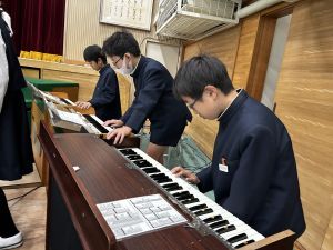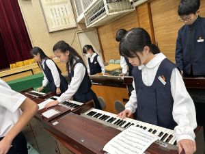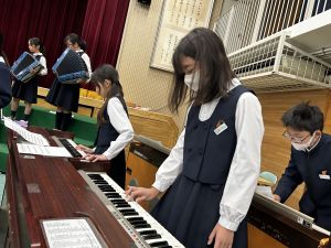 学芸会、最後の音楽発表に向けての講堂練習です。