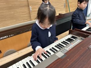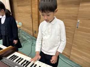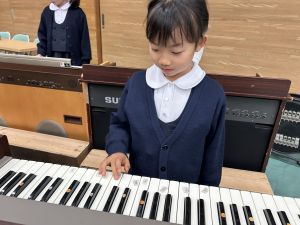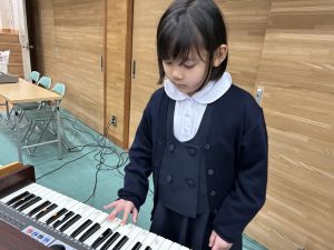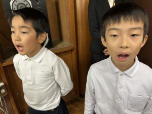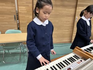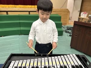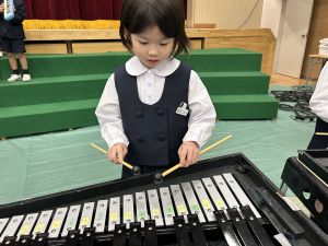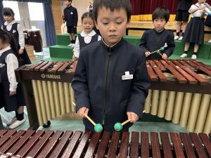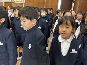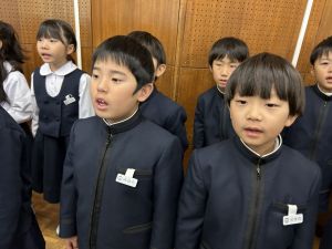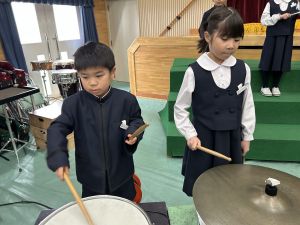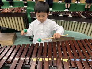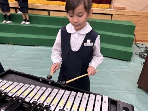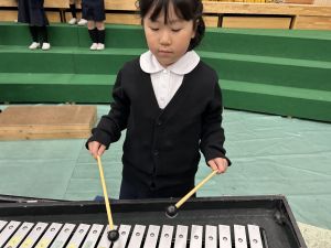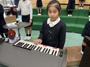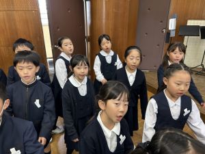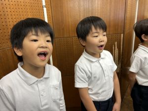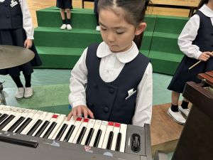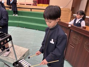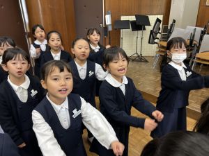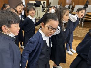 いよいよ、広くて響き方も違う講堂での練習が始まりました。いつもと違う雰囲気に、少し緊張しながらも、一生懸命に取り組む姿が見られました。