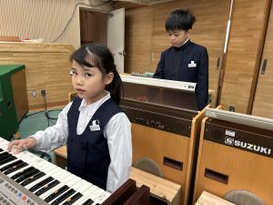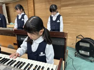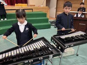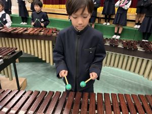 これまで教室や音楽室で練習を重ねてきた子どもたち。