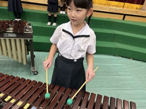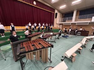 講堂で実際に合奏してみると、広い空間では、音の響き方が違うことでリズムが揃わなくなったり、音がうまく出せなかったりと、新たな課題も見えてきました。また、学年発表の群読の声も、早口で聞き取れなかったり、体全体を使って大きい声が出せなかったりと、まだまだ課題は山積みです。