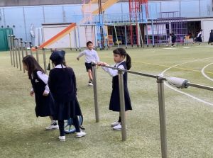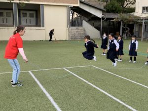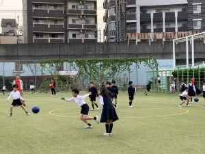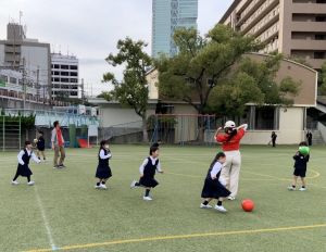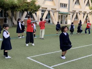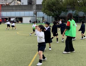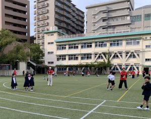 運動場に赤いポロシャツのレクリエーション委員会のお家の人が見えたら、子どもたちは大興奮!!
