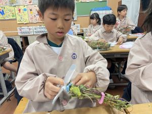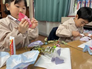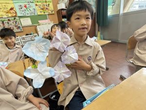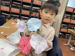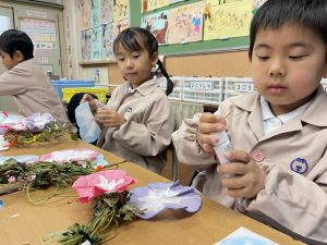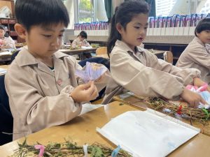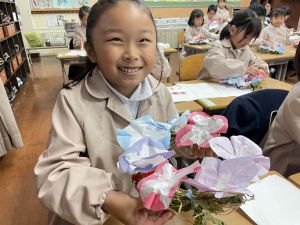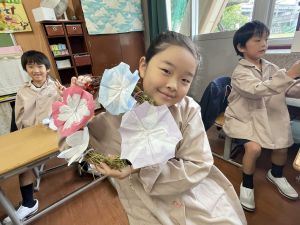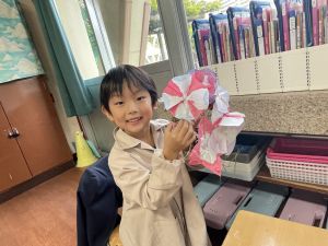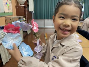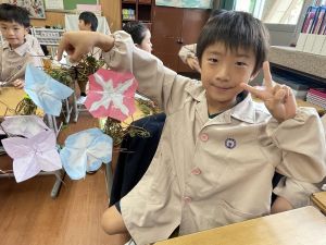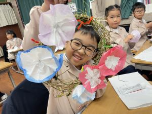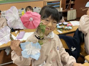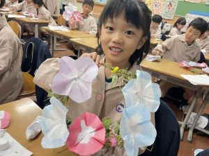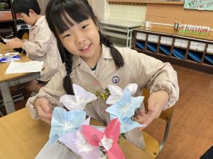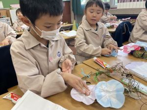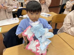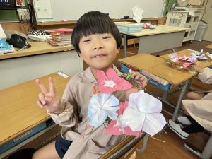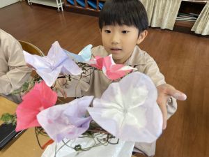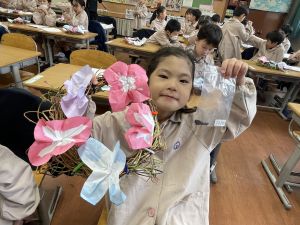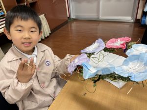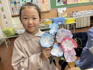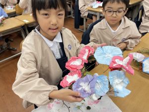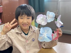 本日持ち帰っていますが、帰宅途中に朝顔が外れているかもしれません。ご家庭で修理して、どこかに飾っていただければと思います。