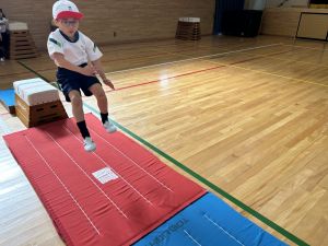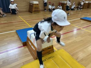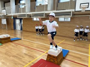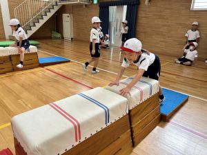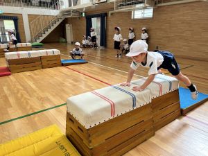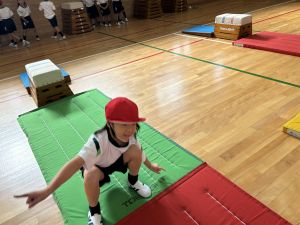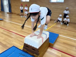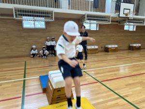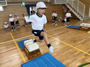 跳び箱に挑戦する姿、助走から踏み切り、着地まで、どの場面にも子どもたちの真剣な表情とチャレンジする気持ちがあふれていました。