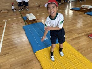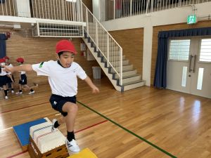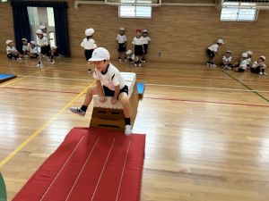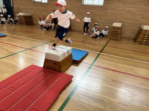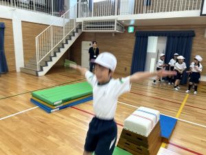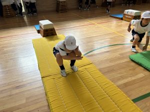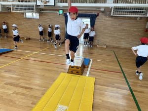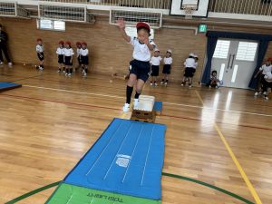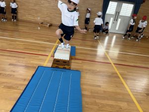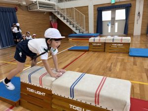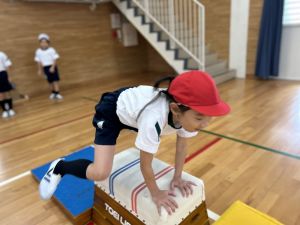 10月の体育は、跳び箱を使って、「ヒーロー」を目指して運動をしていました!