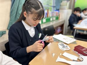 国語の教科書にも載っている「やまなし」や「注文の多い料理店」などで知られる宮沢賢治さんについて調べ、クイズコーナーを作ったり、物語の一場面を段ボールで立体的に再現したりするなど、1~5年生に楽しんでもらえる内容を考えています。