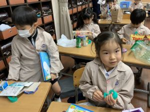 その場合は、お子様と相談のうえ、作品が入る袋を明日持たせていただけますよう、よろしくお願いいたします。