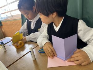 仕掛け絵本を算数的にみることができるとは!金田先生の指導のもと、飛び出す角度を調整できる驚きと面白さに、147期生も釘付けでした。