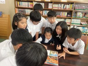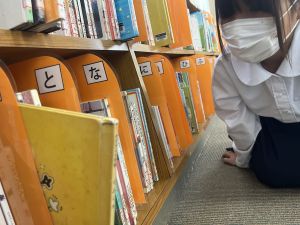 何を飛び出させようか。今日は、図書室へ題材を探しに行きました。