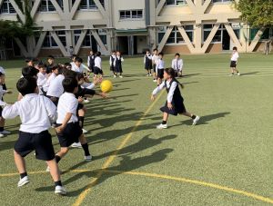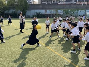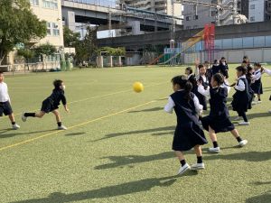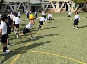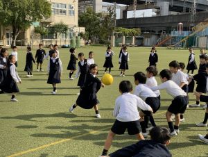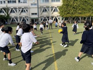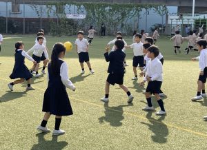 今では、昼休みに運動場が使える時には、学年全体でドッジボールを楽しんでいます。