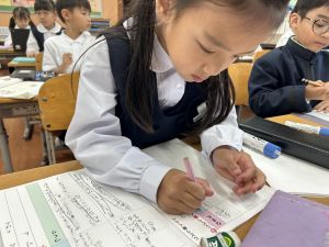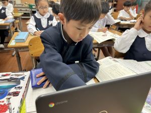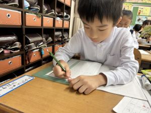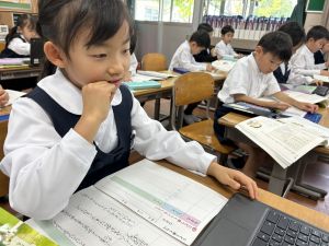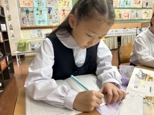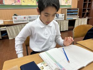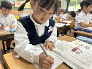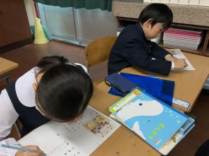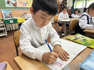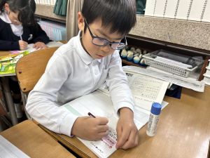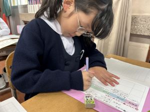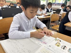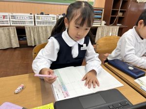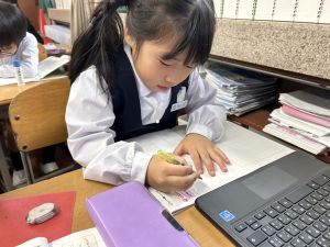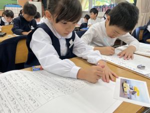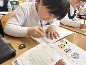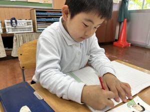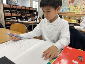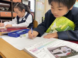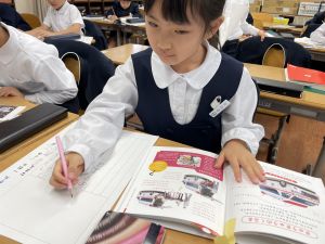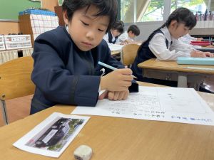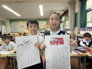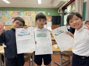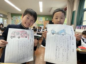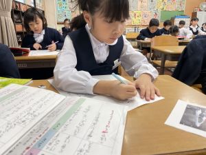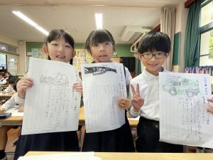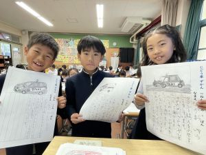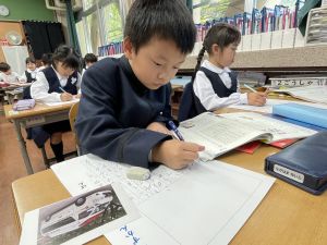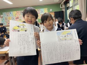どのじどう車について書こうか自分で選び、教科書の文章を元に、一から文章を作り上げていく姿に、7ヶ月間の成長を強く感じました。
