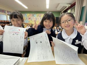 【本日の連絡】 〇新聞紙のお願い 明日、明後日に新聞がある方は持たせていただけると助かります。(本日集まった量がすごく少なくて、焼き芋ができるか心配です・・・。) ◯学芸会の座席くじについて 明日の5時間目、学芸会の座席くじ引きを行います。くじ引きはお子様が引きますが、もし休まれた場合は担任が代わりに引きます。座席決定のお手紙は、11月25日(火)に持ち帰らせます。 |