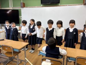 ◯明日1時間目におもちゃランドがあります。準備がありますので、8時半までに登校するようお声かけください。