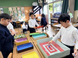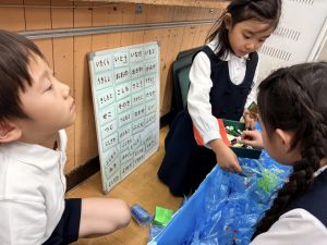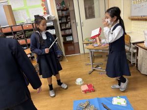 学芸会では、自分の役をどのように表現したらいいのかを一人ひとり考え、工夫している姿があります。