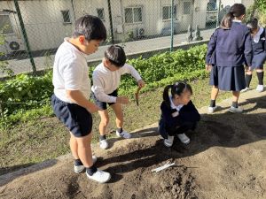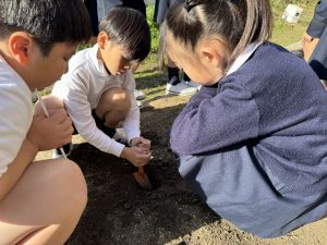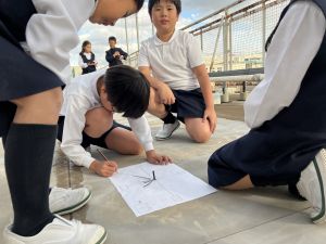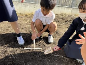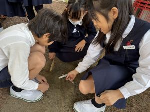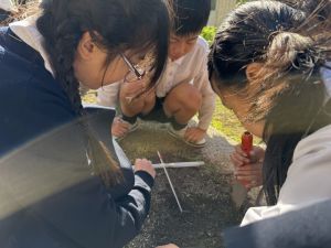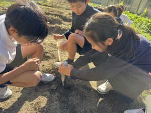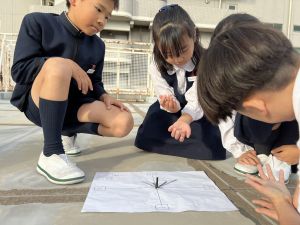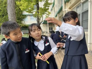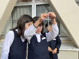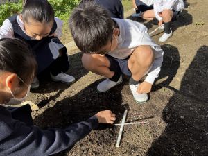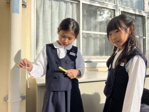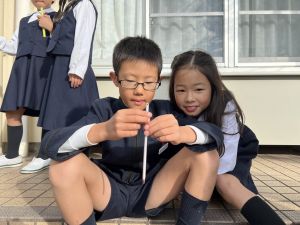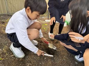 理科の学習では、温度計を使った実験を行っています。 「日なた」と「日かげ」ではどのような違いがあるのか、温度ではどの程度違いがあるのか。実験に向かって、進んでいく148です。