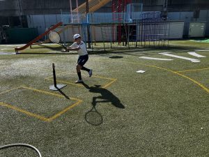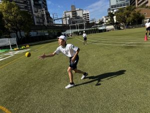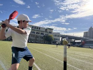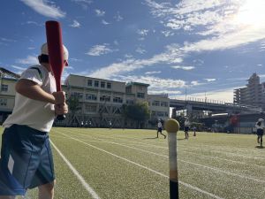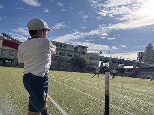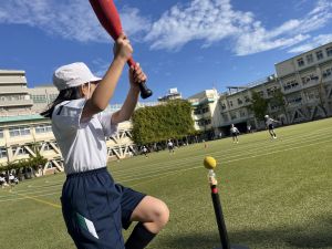 晴天のもと、体育はベースボール。