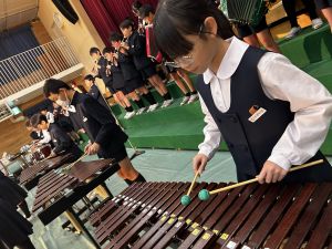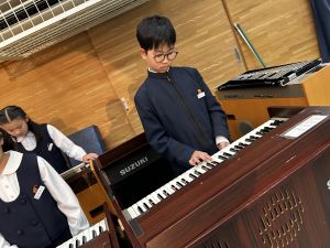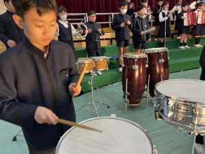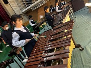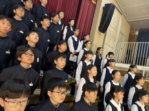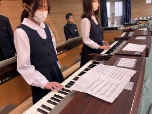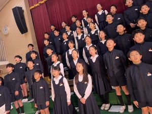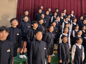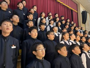 講堂練習、今日は合唱です。
