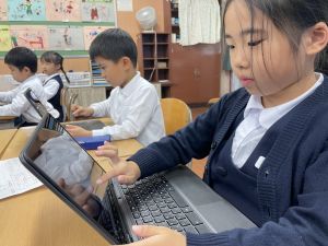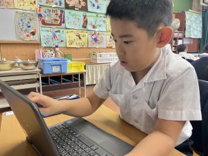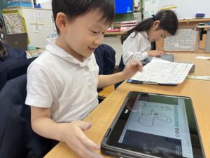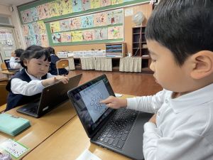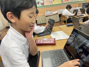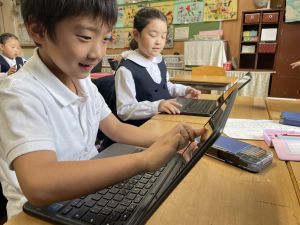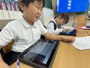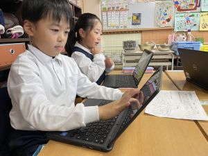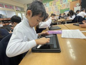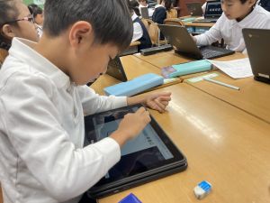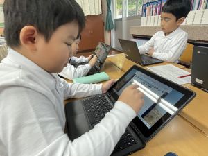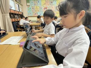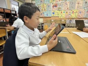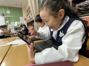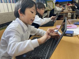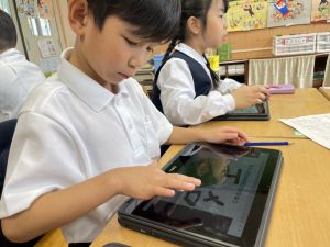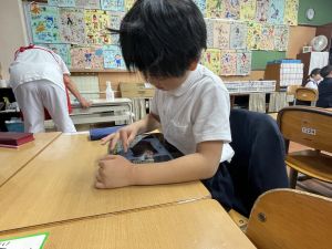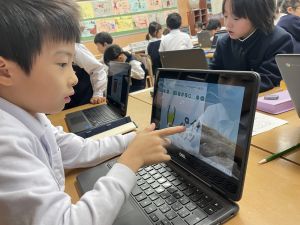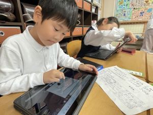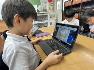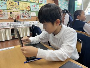 班ごとに何のお店にするか考え、ロイロノートを使って売る品物づくりをしました。