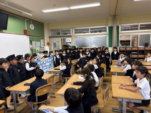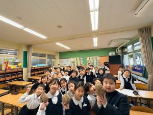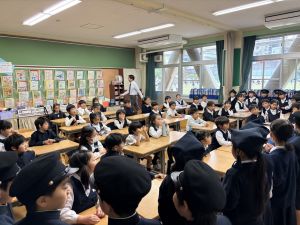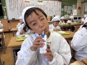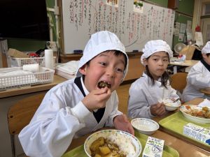給食の時間に2年生の教室に訪れたのですが、大変驚いた様子でした。