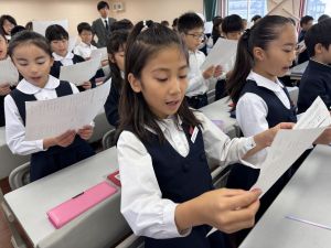 【お知らせとお願い】 1.来週の時間割について 来週の時間割はこちら 21日(金)は学芸会予行です。お弁当のご準備をよろしくお願いします。 2.学芸会講堂座席抽選について 18日(火)に、学芸会保護者の方の座席の抽選を行います。くじはお子様に引いてもらいます。 万が一、お子様が欠席された場合は担任が代わりにくじを引かせていただきます。 3.漢字小テストについて 19日(水)に、漢字小テストを行います。範囲は時間割をご確認下さい。 4.スポーツデーDVD・Blu-rayお申込みされた方へ 本日、スポーツデーのDVD・Blu-rayをお渡ししています。お子様が持ち帰っているか必ずご確認下さい。 |