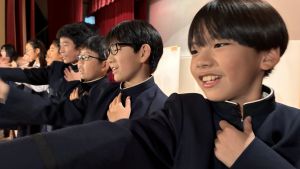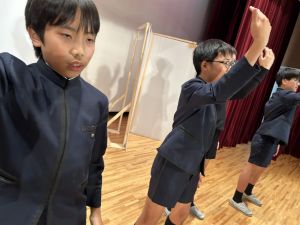 1時間目にはダンスと歌の練習、そして5・6時間目には講堂での練習を行いました。ほとんどの曲にダンスがあります。踊りながら歌うので,とても難しいですが,めきめきと上達しています!!